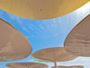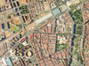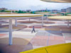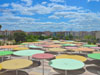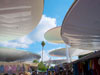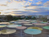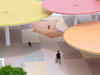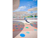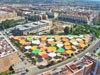 Somos parasoles sí, pero de tamaño urbano. Generamos un escenario, en el que el hombre pueda desplegar distintos usos. El de mercado temporal es el que más restricciones presenta y por tanto aquel que más condiciona la ordenación final. El suelo, como segundo estrato, ofrece en su tratamiento superficial las claves de otros posibles usos del mismo espacio público. Bastarán ciertos elementos simples para que el tablero de juego permita la celebración de otros eventos. Un espacio potencial que servirá de múltiples maneras a las distintas actividades, unas más estables y periódicas, otras más esporádicas y anecdóticas y muchas más aún por descubrir.