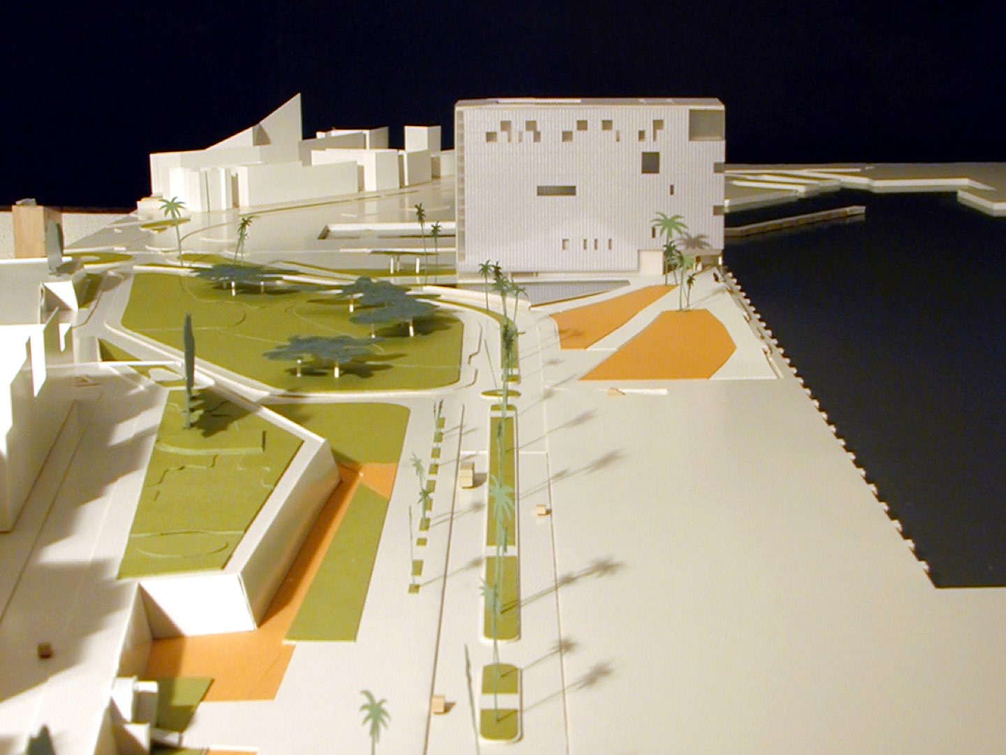 El edificio concentra todo su programa en una planta rectangular de 89 x 29 metros. Estas dimensiones son fruto de concentrar al máximo el tamaño de la planta para liberar tanto, el mayor espacio público posible en el puerto, como las vistas desde la propia ciudad. La plataforma de acceso se talla para producir las salidas de un aparcamiento para 500 coches y ayudar a preparar el acceso al edificio.