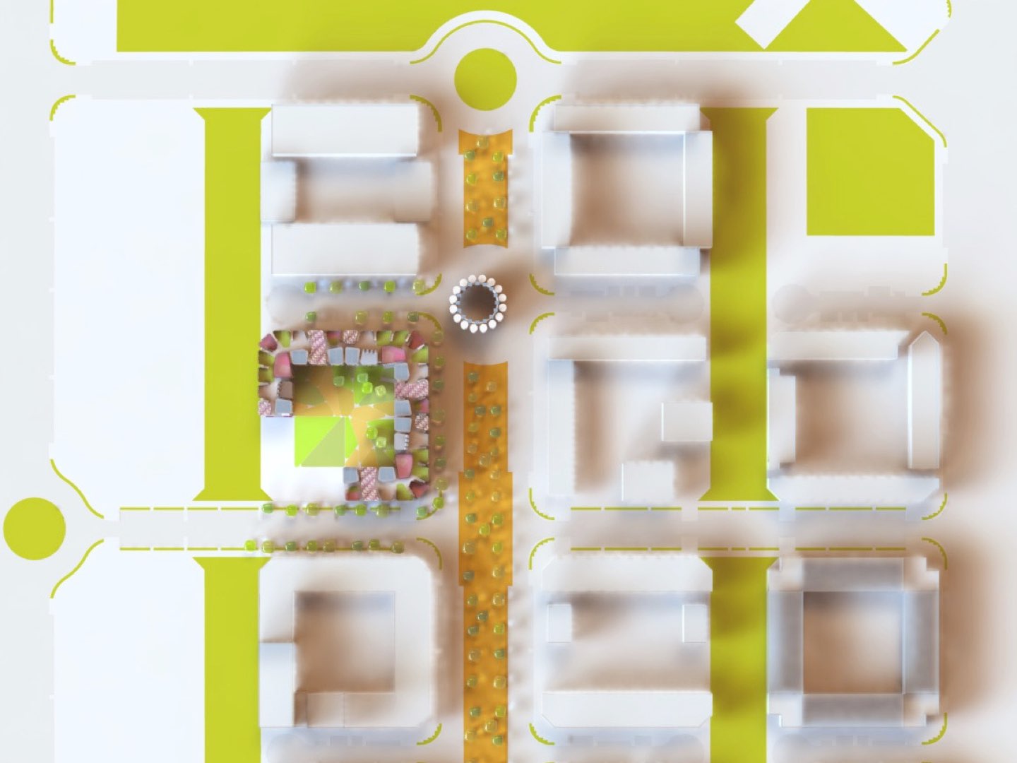 Como estrategia general el proyecto plantea un sistema de agrupación en planta celular que consigue absorber de un modo continuo la condición formal de las zonas de chaflán que la normativa impone, incorporándolas como un elemento más del sistema organizativo. Será la cantidad de m2 edificables y las condiciones de idoneidad de la ubicación de cada pieza del proyecto la que imponga las leyes de apilamiento de las viviendas entre los pilares técnicos estructurales que resuelven las zonas húmedas y el paso de todas las instalaciones de la edificación. Tanto las de cada vivienda como las generales de toda la edificación.